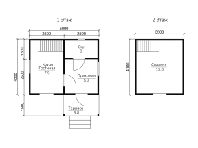 Дом общей площадью 30.1 кв.м. и размерами 5х4 м. может быть выполнен в нескольких вариантах: под усадку и под ключ. Возможно использование профилированного бруса разного сечения: 90х140 мм и 140х140 мм.