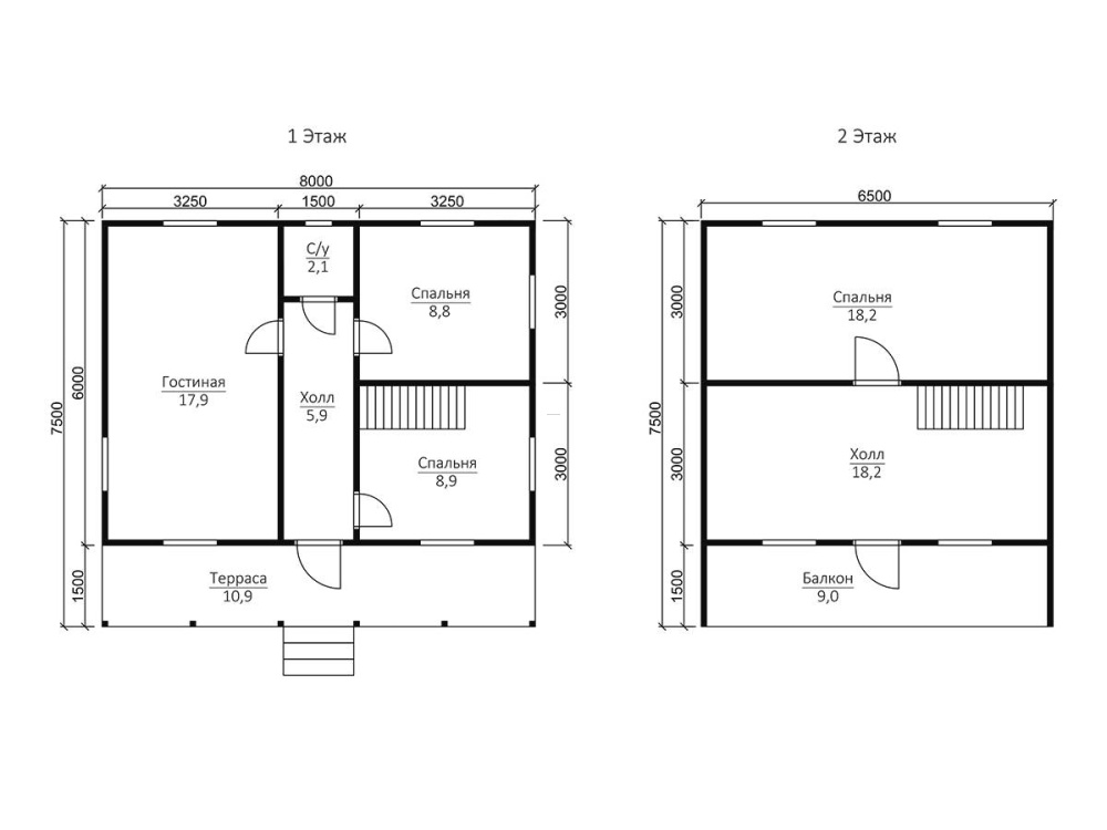 Перспективный и функциональный проект каркасного дома с балконом и большой террасой 42 размером 7,5х8 м. разработан компанией «Дачи из бруса» с учетом главных требований к сооружениям, предназначенным для комфортного загородного отдыха или постоянного проживания на живописном дачном участке.