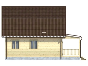 Перспективный и функциональный проект каркасного дома с большой террасой 134 размером 7,5х8 м. разработан компанией «Дачи из бруса» с учетом главных требований к сооружениям, предназначенным для комфортного загородного отдыха или постоянного проживания на живописном дачном участке.