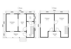 Перспективный и функциональный проект каркасного дома с балконом и маленькой террасой 94 размером 6х7 м. разработан компанией «Дачи из бруса» с учетом главных требований к сооружениям, предназначенным для комфортного загородного отдыха или постоянного проживания на живописном дачном участке.
